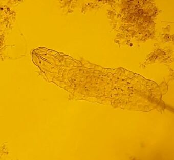 Das Bild zeigt ein Bärtierchen unter einem Mikroskop. Entstanden ist es im Zuge der Ausbildung zum Biologielaboranten/ zur Biologielaborantin an der Uni Jena. Es gelten die Nutzungsbedingungen der Mediothek und Pixiothek.