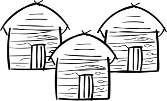 Das Bild zeigt ein gezeichnetes altes Dorf. Es stammt aus dem Projekt "Didactica Bavaria Bohemia" - Materialpakete daraus siehe "Verwandte Medien (Auswahl)". Das Bild ist unter CC0 lizenziert und kann somit frei verwendet werden.