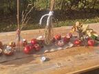 Tisch mit Gläsern, Karaffen und Äpfeln