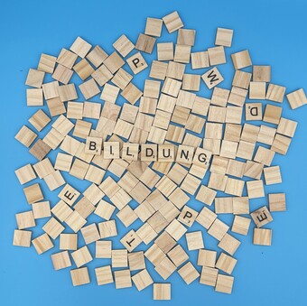 Aus Buchstaben wurde das Wort "Bildung" gelegt. Es gelten die Nutzungsbedingungen der Mediothek und Pixiothek.