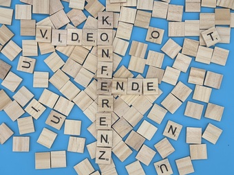 Aus Buchstaben wurden die Worte "Videokonferenz" und "Ende" gelegt. Es gelten die Nutzungsbedingungen der Mediothek und Pixiothek.