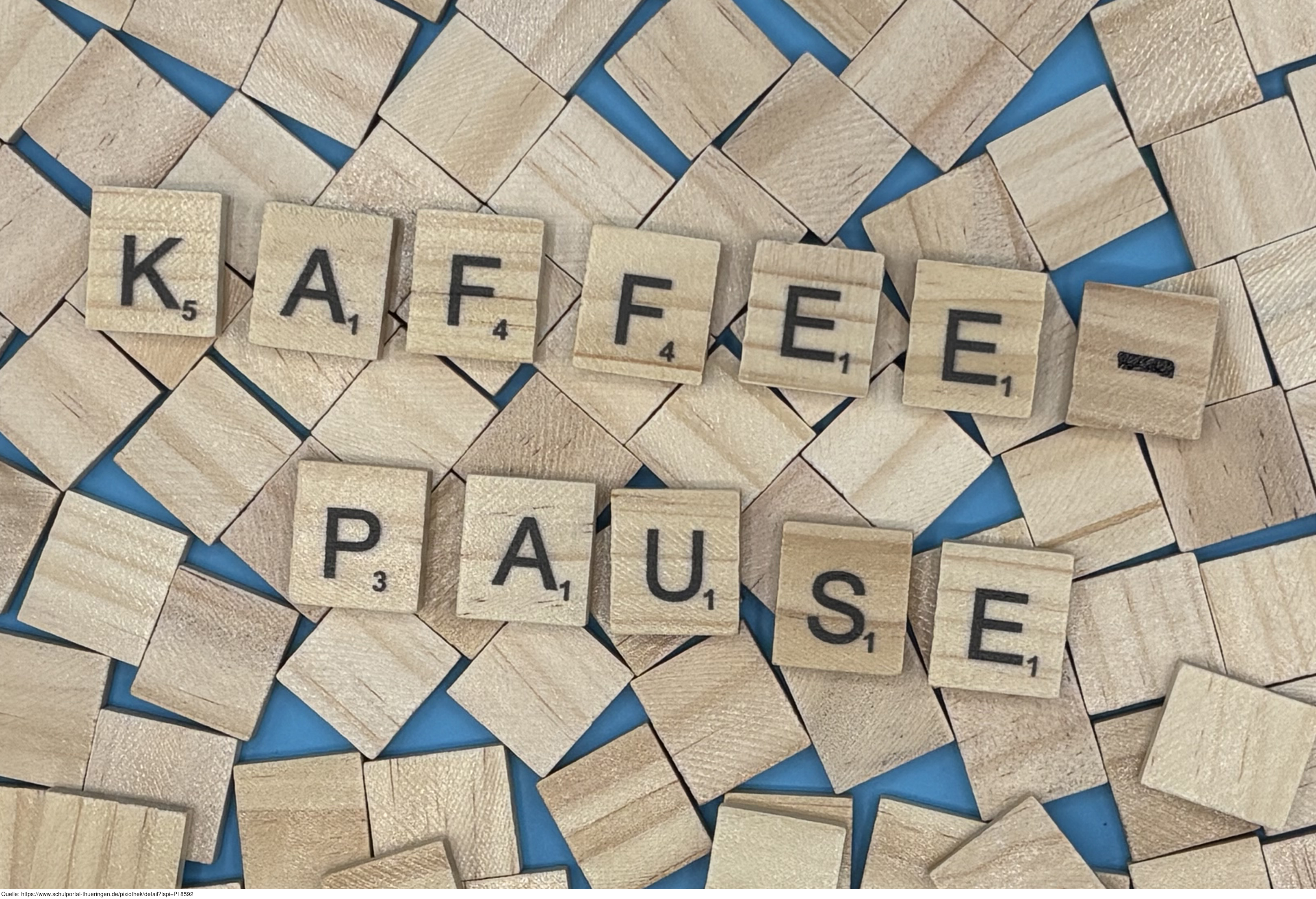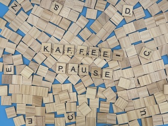 Aus Buchstaben wurde das Wort "Kaffeepause" gelegt. Es gelten die Nutzungsbedingungen der Mediothek und Pixiothek.