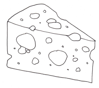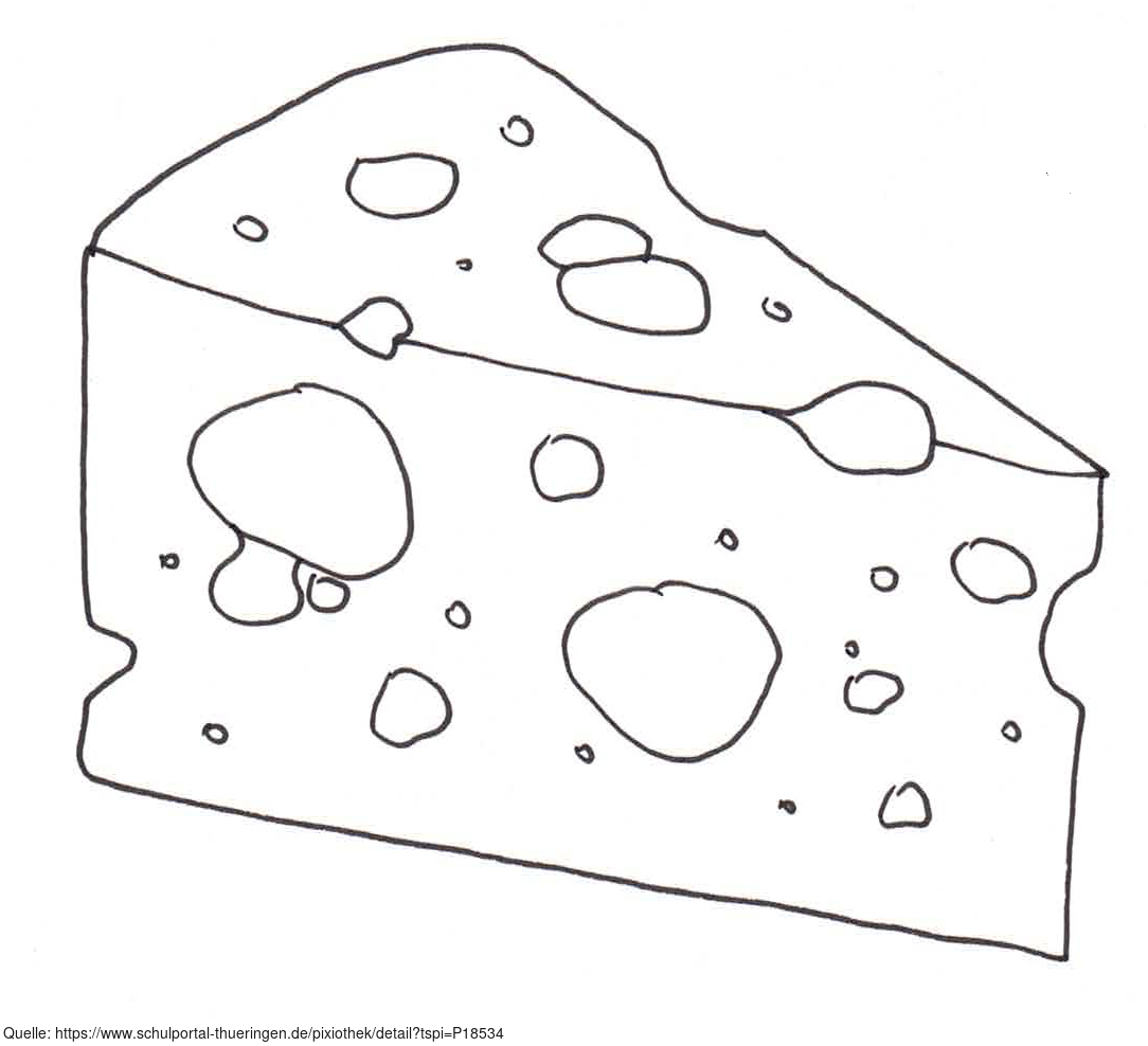 Das Bild zeigt ein gezeichnetes Stück Käse (s/w). Es gehört zur Serie "Ernährungspyramide zum Basteln und Gestalten" und findet u.a. im gleichnamigen Lernobjekt unter https://www.schulportal-th​ueringen.de/web/guest/medi​a/detail?tspi=18517 Verwendung. Es gelten die Nutzungsbedingungen der Mediothek und Pixiothek.