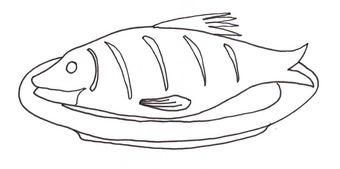 Das Bild zeigt einen gezeichneten Fisch (s/w). Es gehört zur Serie "Ernährungspyramide zum Basteln und Gestalten" und findet u.a. im gleichnamigen Lernobjekt unter https://www.schulportal-thueringen.de/web/guest/media/detail?tspi=18517 Verwendung. Es gelten die Nutzungsbedingungen der Mediothek und Pixiothek.