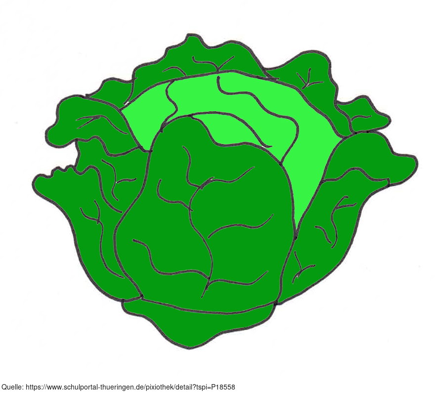 Das Bild zeigt einen gezeichneten Kopfsalat (farbig). Es gehört zur Serie "Ernährungspyramide zum Basteln und Gestalten" und findet u.a. im gleichnamigen Lernobjekt unter https://www.schulportal-thueringen.de/web/guest/media/detail?tspi=18517 Verwendung. Es gelten die Nutzungsbedingungen der Mediothek und Pixiothek.