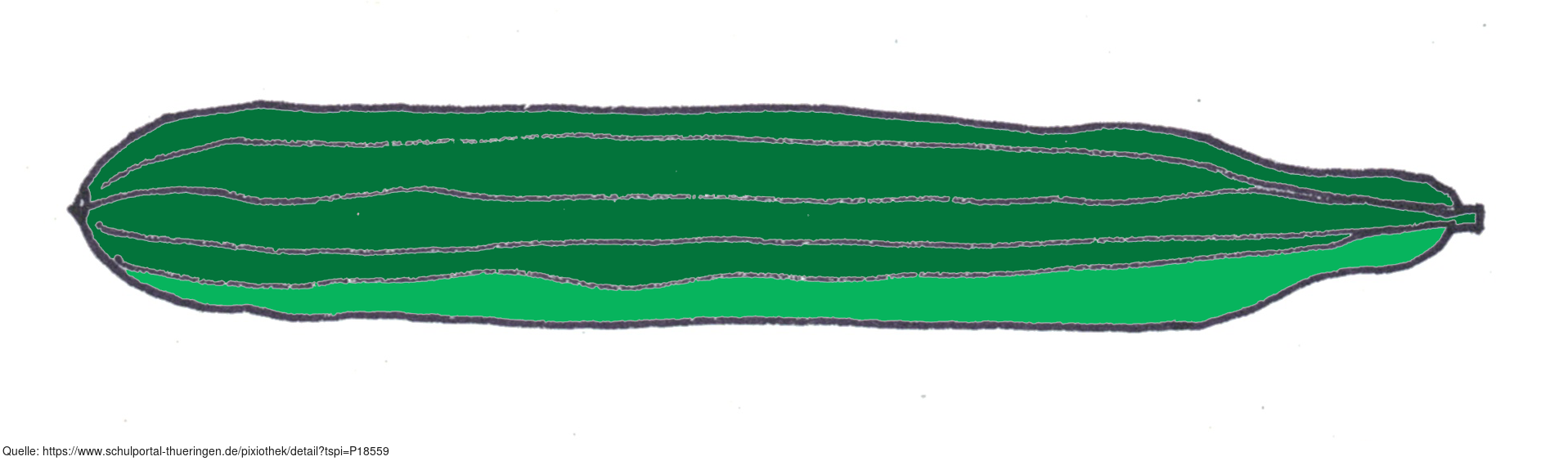Das Bild zeigt eine gezeichnete Salatgurke (farbig). Es gehört zur Serie "Ernährungspyramide zum Basteln und Gestalten" und findet u.a. im gleichnamigen Lernobjekt unter https://www.schulportal-thueringen.de/web/guest/media/detail?tspi=18517 Verwendung. Es gelten die Nutzungsbedingungen der Mediothek und Pixiothek.