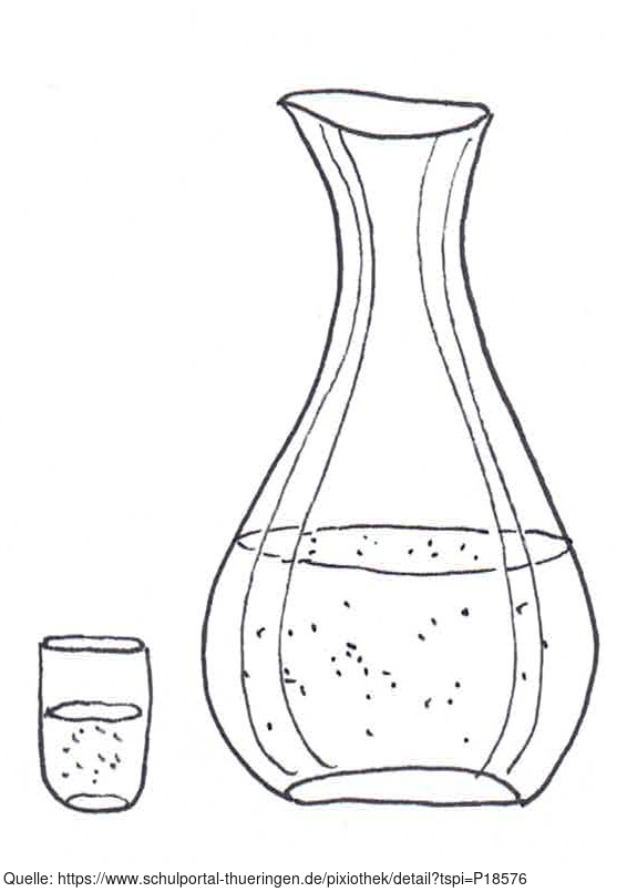 Das Bild zeigt eine gezeichnete Karaffe und ein gezeichnetes Glas mit Wasser (s/w). Es gehört zur Serie "Ernährungspyramide zum Basteln und Gestalten" und findet u.a. im gleichnamigen Lernobjekt unter https://www.schulportal-thueringen.de/web/guest/media/detail?tspi=18517 Verwendung. Es gelten die Nutzungsbedingungen der Mediothek und Pixiothek.