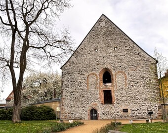 Das Bild zeigt die Ruine des ehemaligen Dominikanerinnen-Nonnenklosters St. Maria Magdalena als Stiftung der Weidaer Vögte aus dem 13. Jahrhundert. Der ursprünglich romanische Kirchenbau wurde aus Bruchsteinen gemauert und erhielt später gotische Spitzbogenfenster. Nach Auflösung des Klosters im 16. Jh. diente die Kirche als Getreidelager.