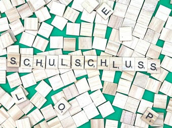 Aus Buchstaben wurde der Begriff „Schulschluss" gelegt. Es gelten die Nutzungsbedingungen der Mediothek und Pixiothek.
