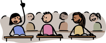 Die Zeichnung zeigt eine Schulklasse im Unterricht. Eine Schülerin meldet sich. Das Bild ist unter CC0 lizenziert und kann somit frei verwendet werden. Es ist neben weiteren Bildern auch hier zu finden: https://cocomaterial.com