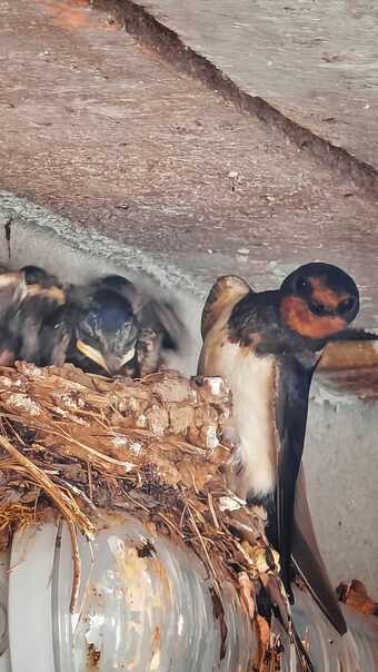 Junge Rauchschwalben nach der Fütterung