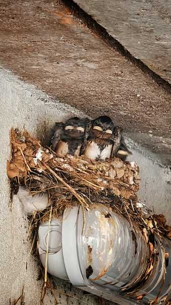 Junge Rauchschwalben nach der Fütterung