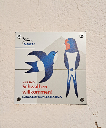 Das Foto gehört zur Serie "Schwalbenfreundliches Haus". Es zeigt die Tafel zur Kennzeichnung und Anerkennung eines schwalbenfreundlichen Hauses. Die Besitzer der Scheune bieten bewusst für Vögel und Fledermäuse einige offene Durchflugsmöglichkeiten an. Es gelten die Nutzungsbedingungen der Mediothek und Pixiothek.