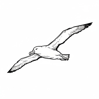 Das Bild zeigt einen gezeichneten Albatros. Das Bild wurde mittels einer KI (Gemini) erstellt und ist unter CC0 lizenziert. Weitere Bilder aus Herrn Emrich-Försters Bild-Archiv findet man hier: https://pix.foerster.rocks/