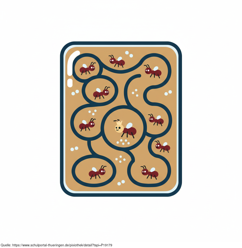 Das Bild zeigt eine gezeichnete Armeisenfarm. Das Bild wurde mittels einer KI (Gemini) erstellt und ist unter CC0 lizenziert. Weitere Bilder aus Herrn Emrich-Försters Bild-Archiv findet man hier: https://pix.foerster.rocks/