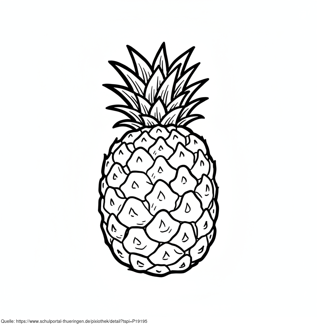 Das Bild zeigt eine gezeichnete Ananas. Das Bild wurde mittels einer KI (Gemini) erstellt und ist unter CC0 lizenziert. Weitere Bilder aus Herrn Emrich-Försters Bild-Archiv findet man hier: https://pix.foerster.rocks/
