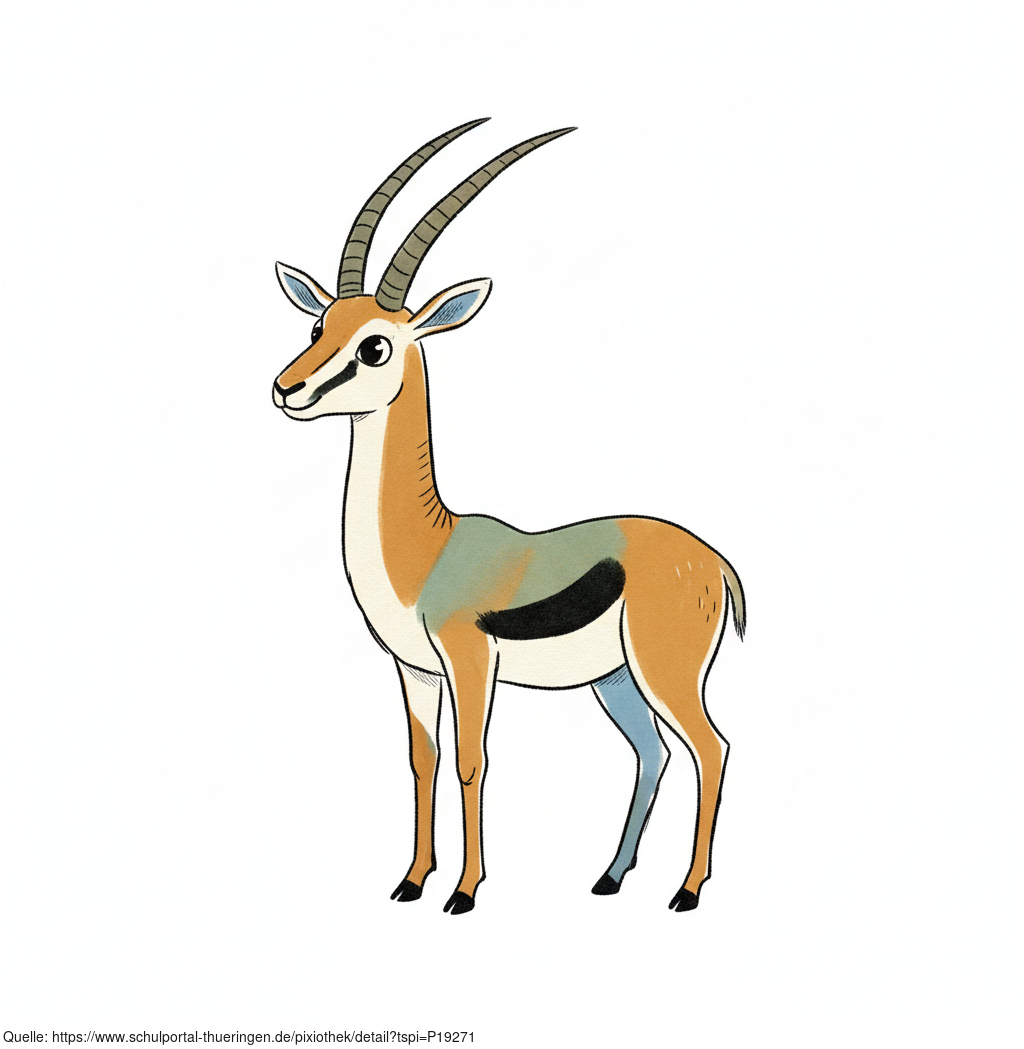 Das Bild zeigt eine gezeichnete Antilope. Das Bild wurde mittels einer KI (Gemini) erstellt und ist unter CC0 lizenziert. Weitere Bilder aus Herrn Emrich-Försters Bild-Archiv findet man hier: https://pix.foerster.rocks/