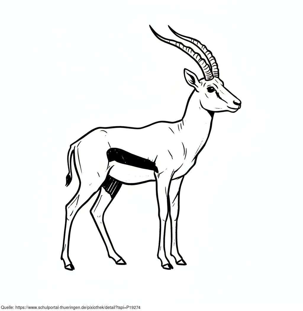 Das Bild zeigt eine gezeichnete Antilope. Das Bild wurde mittels einer KI (Gemini) erstellt und ist unter CC0 lizenziert. Weitere Bilder aus Herrn Emrich-Försters Bild-Archiv findet man hier: https://pix.foerster.rocks/