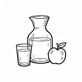 Das Bild zeigt gezeichnete Motive zum Begriff Apfelsaft. Das Bild wurde mittels einer KI (Gemini) erstellt und ist unter CC0 lizenziert. Weitere Bilder aus Herrn Emrich-Försters Bild-Archiv findet man hier: https://pix.foerster.rocks/