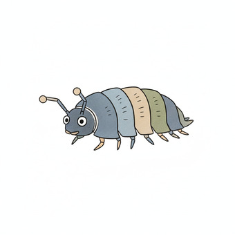 Das Bild zeigt eine gezeichnete Assel. Das Bild wurde mittels einer KI (Gemini) erstellt und ist unter CC0 lizenziert. Weitere Bilder aus Herrn Emrich-Försters Bild-Archiv findet man hier: https://pix.foerster.rocks/