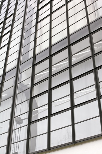 Bauhausgebäude in Dessau: Ansicht der Glasfassade