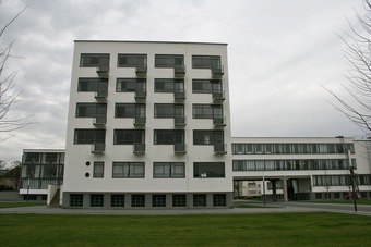 Das Foto gehört zu einer Serie mit Fotografien vom Bauhausgebäude in Dessau, aufgenommen 2010.