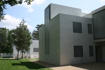 Das Meisterhaus von Gropius ist als Nachbau wiederhergestellt worden, aber lediglich als Hülle, die das Original andeutet. Im Inneren befindet sich eine Ausstellung. Analog wurde der Teil Moholy-Nagy des Doppelhauses Moholy-Nagy/Feininger wieder errichtet, um das Gesamtensemble deutlich zu machen. Auch dieses zweite Haus ist keine Rekonstruktion im eigentlichen Sinne, sondern eine Hülle, die als Eindruckgeber fungiert.