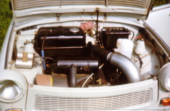 Abgebildet ist der 2-Zylinder-Zweitakt-Ottomotor vom Trabant 601 S, Baujahr 1989.