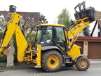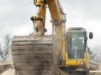 Abgebildet ist die Hydraulische Anlage am Lastarm eines Baggers.