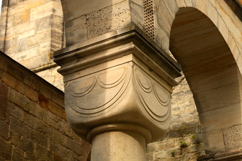 Das Foto gehört zur Serie "Klosterruine Paulinzella". Es zeigt ein Romanisches Kapitell. - - Es gelten die Hinweis für Bilder mit Motiven von Stiftungsobjekten der Stiftung Thüringer Schlösser und Gärten:
