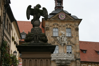 Das Foto gehört zur Serie "Bamberg". Die Altstadt der oberfränkischen Stadt Bamberg ist der größte weitgehend unversehrt erhaltene historische Stadtkern in Deutschland. Das Bild zeigt ein Detail eines Hauses der Altstadt. Es gelten die Nutzungsbedingungen der Mediothek und Pixiothek.