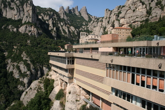 Das Bild gehört zu einer Serie mit ausgewählten Fotografien vom Kloster Santa Maria de Montserrat, nordwestlich von Barcelona. Zu sehen ist eine Gesamtansicht des Klosters. Berühmt ist die Abtei durch die aus dem 12. Jahrhundert stammende Mariendarstellung „Unsere Liebe Frau von Montserrat“, oft als Schwarze Madonna bezeichnet. Darüber hinaus hat sich Montserrat als bedeutendes Zentrum der katalanischen Kultur einen Namen gemacht.