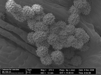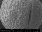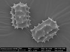 Das Bild gehört zu einer Serie Pollen-Fotografien, die mit einem Rasterelektronenmikroskop aufgenommen wurden. Zu sehen sind Pollen von Centaurea exsurgens, der Flockenblume (spec.). Entstanden ist das Bild im Zuge der Ausbildung zum Biologielaboranten/ zur Biologielaborantin an der Uni Jena.