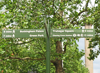 Das Foto gehört zur Serie London 2016. Es zeigt einen Wegweiser im St. James' Park. Es gelten die Nutzungsbedingungen der Mediothek und Pixiothek.