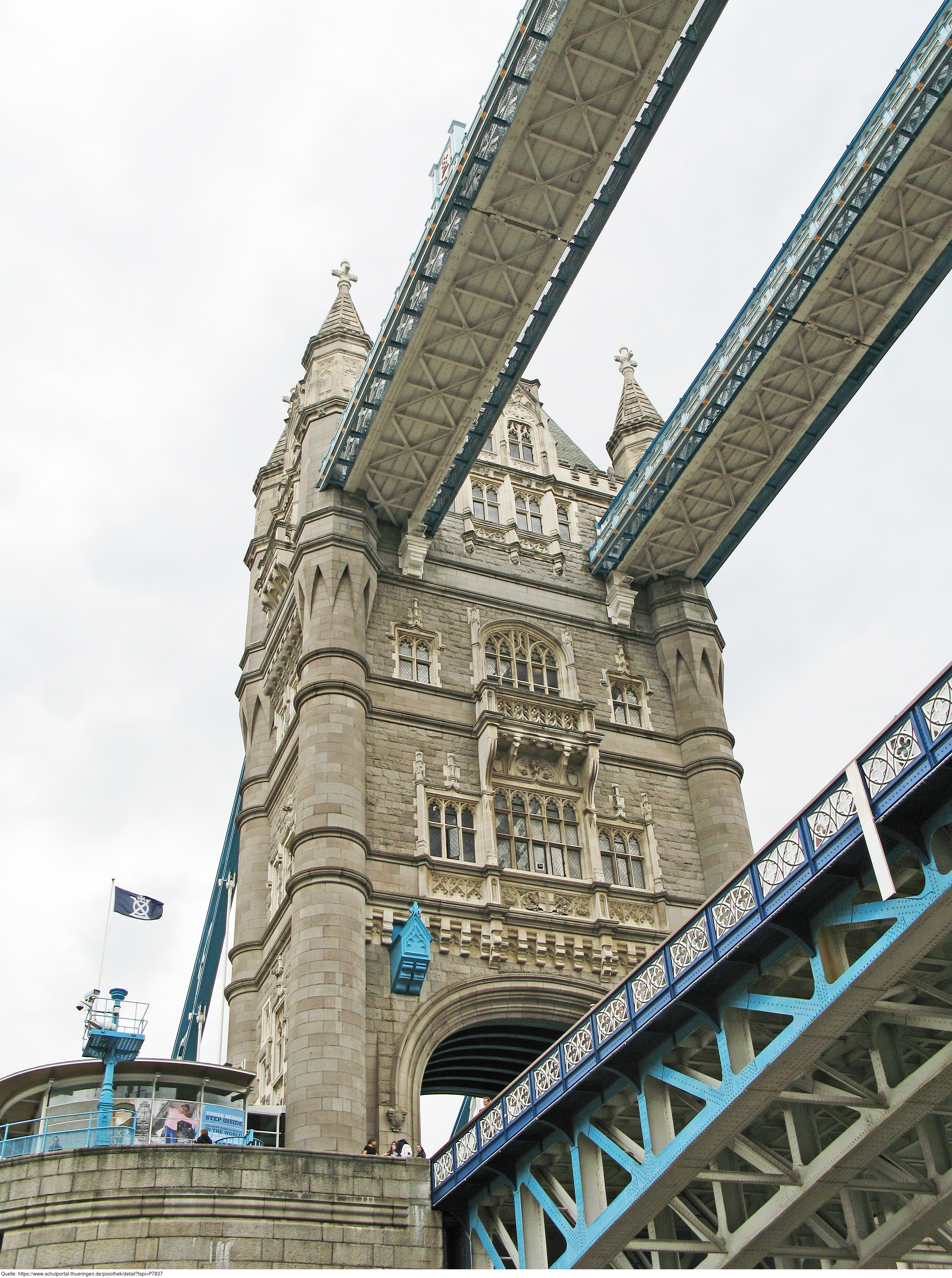 Das Foto gehört zur Serie London 2016. Es zeigt einen Teil der Tower Bridge (Südturm). Es gelten die Nutzungsbedingungen der Mediothek und Pixiothek.