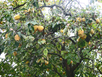 Das Foto gehört zur Serie Obstbäume. Es zeigt einen Quittenbaum mit Früchten. Es gelten die Nutzungsbedingungen der Mediothek und Pixiothek.