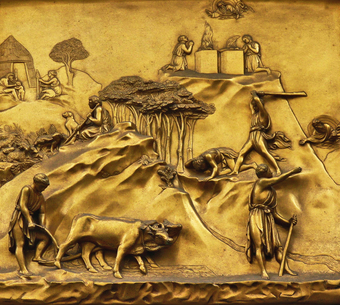 Das Foto gehört zur Serie "Paradiestür am Baptisterium von Florenz". Es zeigt Kain und Abel, ein Bronzerelief von Lorenzo Ghiberti. Es ist als die obere rechte von zehn Bildtafeln in seine Paradiestür (auch Paradiespforte genannt) eingebunden. Es gelten die Nutzungsbedingungen der Mediothek und Pixiothek.