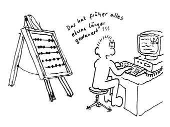Das Foto gehört zur Serie "Paul". Es zeigt Paul mit moderner und historischer Rechentechnik. Das Bild ist unter CC0 lizenziert und kann somit frei verwendet werden.