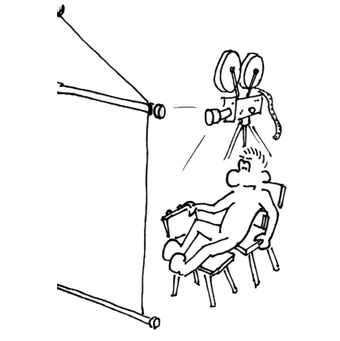 Das Foto gehört zur Serie "Paul". Es zeigt Paul, einen Filmprojektor und eine Projektionswand. Das Bild ist unter CC0 lizenziert und kann somit frei verwendet werden.