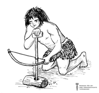 Das Bild gehört zur Serie "Zeichnungen Steinzeit - Museum für Ur- und Frühgeschichte Thüringens". Abgebildet ist eine Möglichkeit, um Feuer zu machen. Es gelten die Nutzungsbedingungen der Mediothek und Pixiothek.
