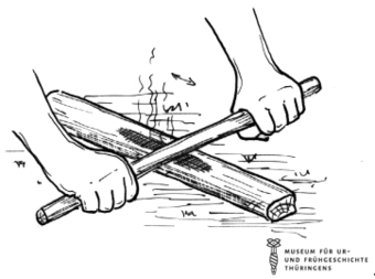 Das Bild gehört zur Serie "Zeichnungen Steinzeit - Museum für Ur- und Frühgeschichte Thüringens". Abgebildet ist eine Möglichkeit, um Feuer zu machen. Es gelten die Nutzungsbedingungen der Mediothek und Pixiothek.