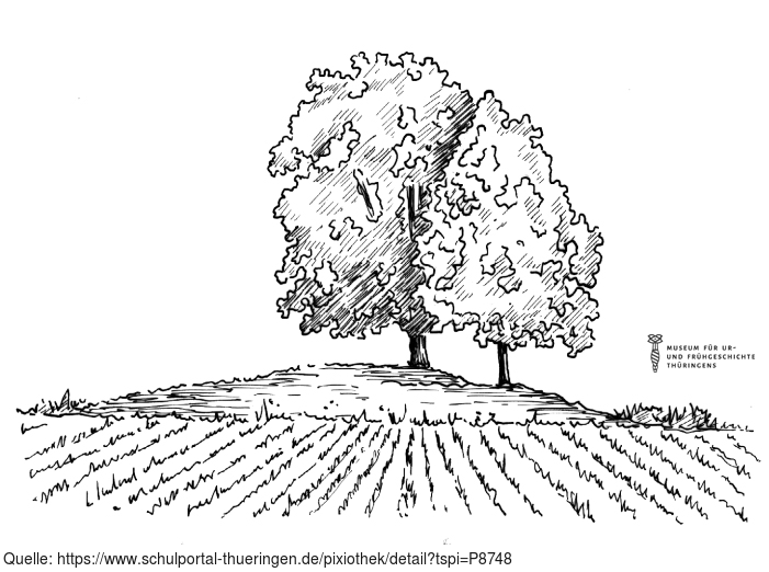 Das Bild gehört zur Serie "Zeichnungen Steinzeit - Museum für Ur- und Frühgeschichte Thüringens". Abgebildet ist ein Grabhügel. Es gelten die Nutzungsbedingungen der Mediothek und Pixiothek.