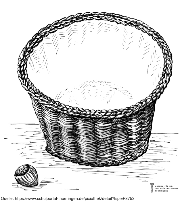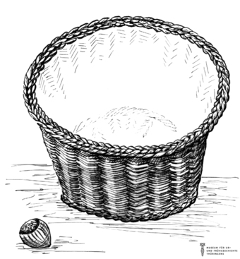 Das Bild gehört zur Serie "Zeichnungen Steinzeit - Museum für Ur- und Frühgeschichte Thüringens". Abgebildet ist ein geflochtener Korb. Es gelten die Nutzungsbedingungen der Mediothek und Pixiothek.