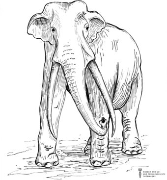 Das Bild gehört zur Serie "Zeichnungen Steinzeit - Museum für Ur- und Frühgeschichte Thüringens". Abgebildet ist der Ur-Elefant. Es gelten die Nutzungsbedingungen der Mediothek und Pixiothek.