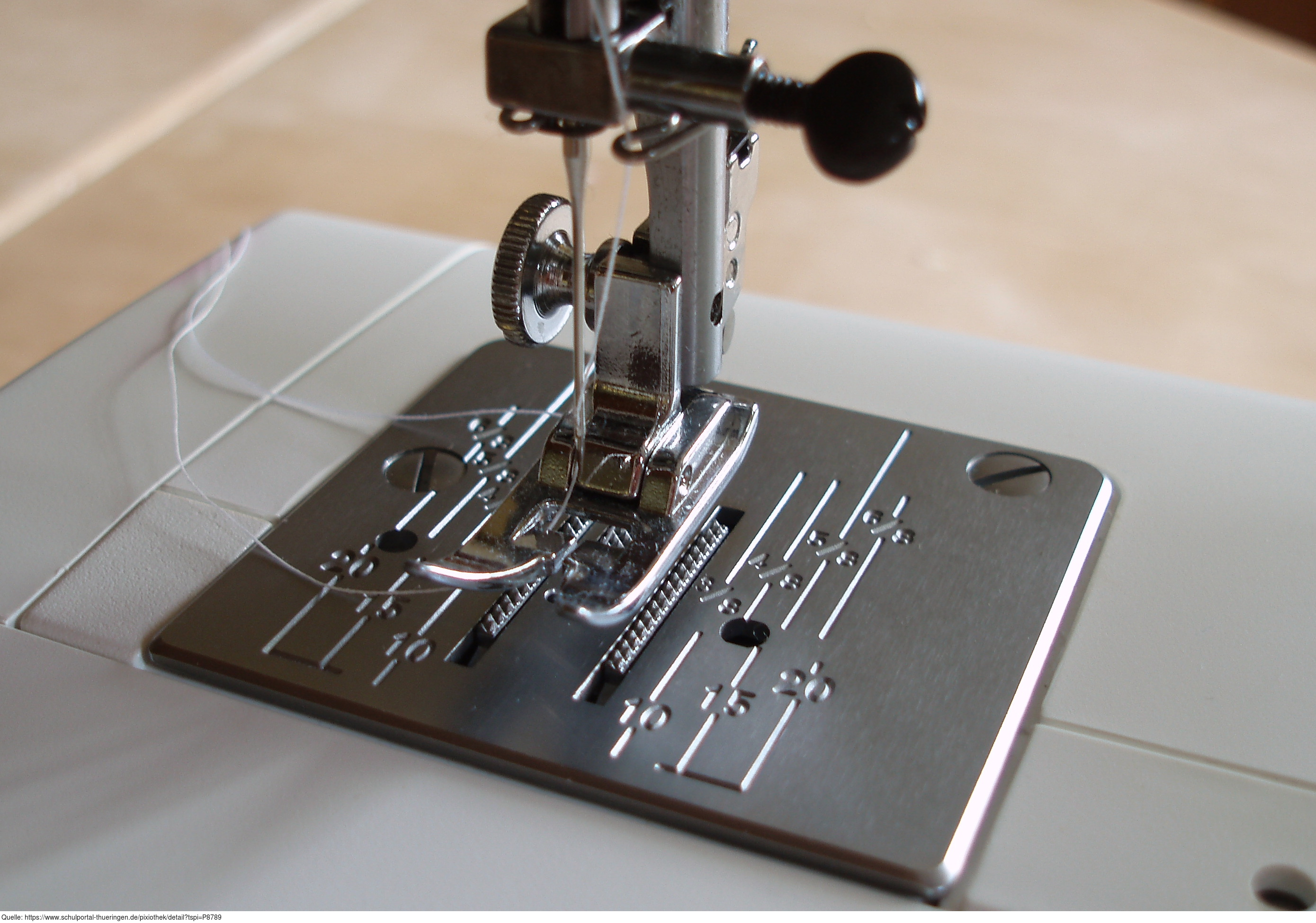 Das Foto gehört zur Serie "Gestalten". Es zeigt die Stichplatte einer Nähmaschine. Das Bild ist unter CC0 lizenziert und kann somit frei verwendet werden.