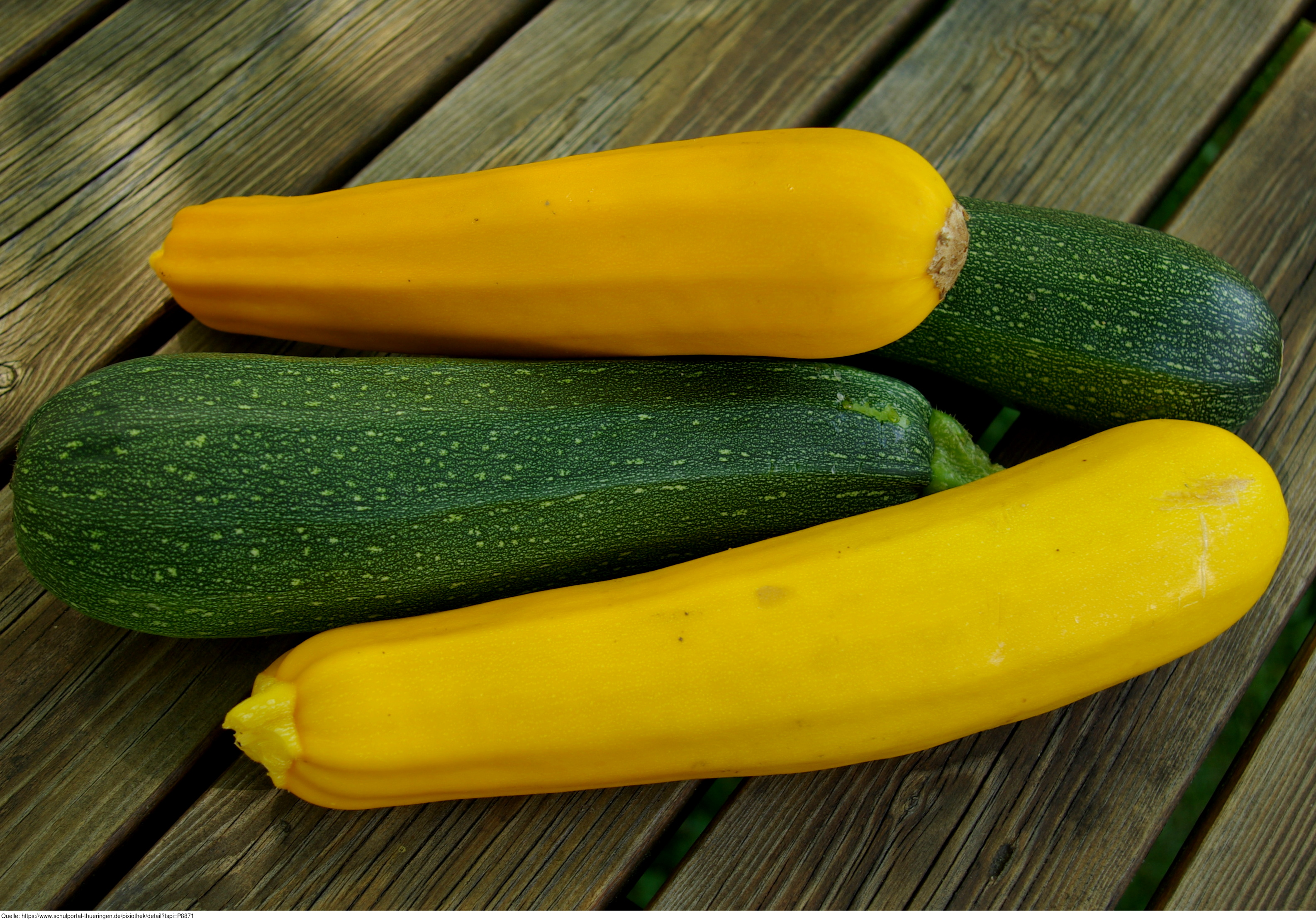 Das Foto gehört zur Serie "Gemüse". Es zeigt gelbe und grüne Zucchinifrüchte. Die Zucchini ist eine Unterart vom Gartenkürbis und gehören zur Pflanzenfamilie der Kürbisgewächse. Das Bild ist unter CC0 lizenziert und kann somit frei verwendet werden.