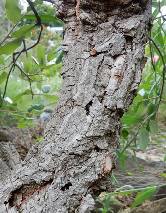 Das Foto gehört zur Serie "Laubbäume". Es zeigt den Stamm einer Korkeiche (Quercus suber L.). Die Korkeiche ist ein immergrüner Laubbaum des westlichen Mittelmeerraums. Das Bild ist unter CC0 lizenziert und kann somit frei verwendet werden.