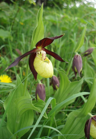 Das Foto gehört zur Serie "Blüten von Blumen". Es zeigt die Blüte der Orchidee "Gelber Frauenschuh" (Cypripedium calceolus), eine wildwachsende Orchideenart in Europa. Das Bild ist unter CC0 lizenziert und kann somit frei verwendet werden.