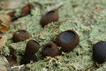 Das Bild gehört zur Serie "Baumpilze". Es zeigt Pilze der Art Gemeiner Schmutzbecherling (Bulgaria inquinans). Der Gemeine Schmutzbecherling ist ein Rindenbewohner, der vor allem auf relativ frischen, liegenden Stämmen und Ästen von Eichen, seltener Esskastanie, Hainbuche und Ulme wächst. Das Bild ist unter CC0 lizenziert und kann somit frei verwendet werden.