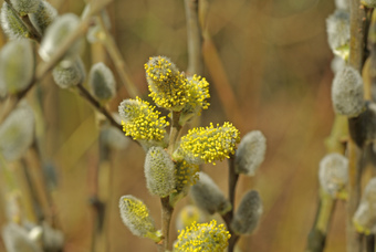 Das Foto gehört zur Serie "Laubbäume". Es zeigt Weidenkätzchen d. h. Blütenkätzchen der Weiden (Salix). Das Bild ist unter CC0 lizenziert und kann somit frei verwendet werden.